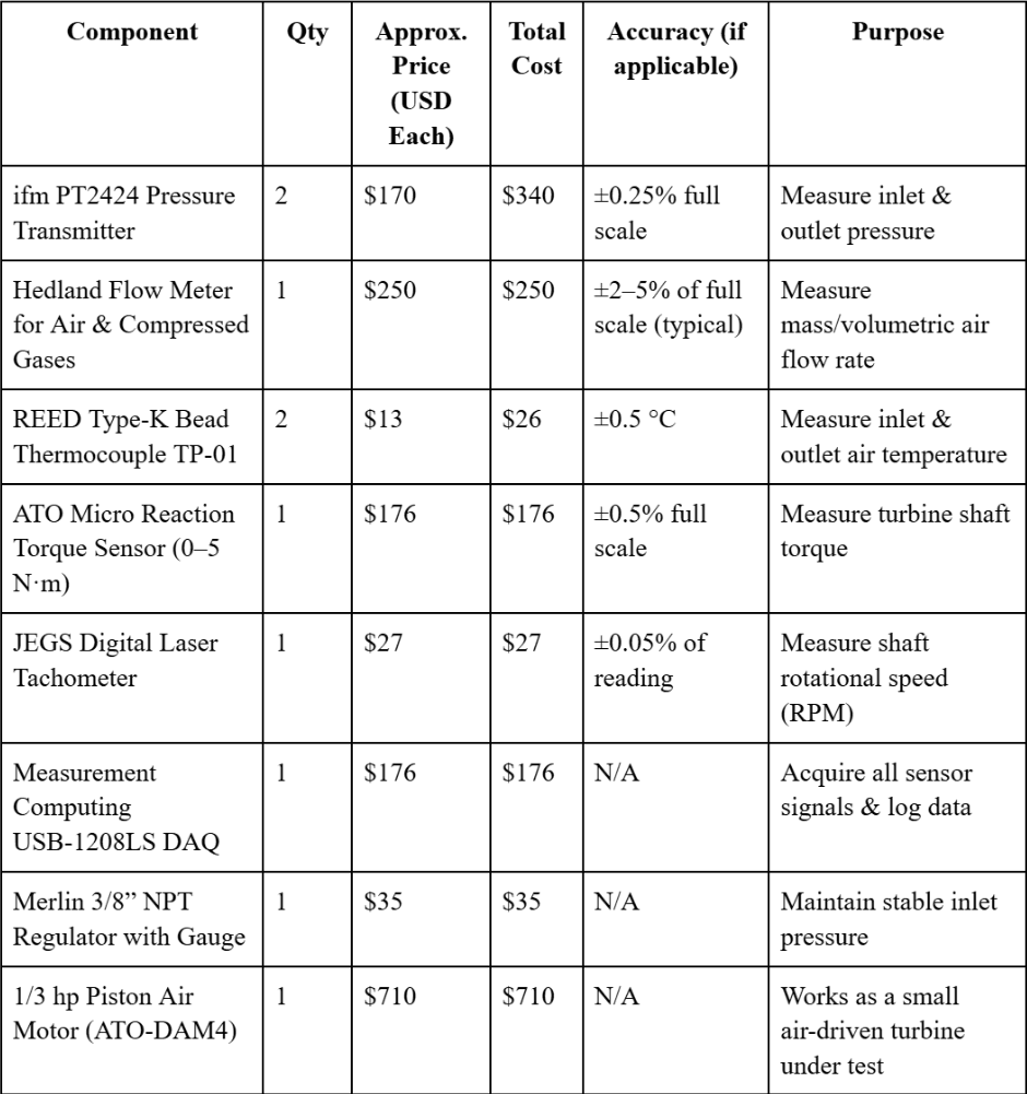 Confirmed that selected sensors were suitable for accurate turbine performance evaluation