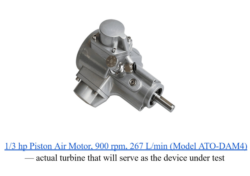 This project involved designing a laboratory experiment to measure the isentropic expansion efficiency of a miniature air turbine. The goal was to study how turbine performance changes with inlet pressure and applied load. The experiment applied steady-flow energy equations and ideal-gas isentropic relations learned in MMET 370 to connect theory with real system behavior.
